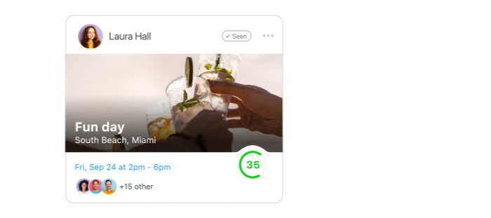 Announce your upcoming event attractively, providing all the information and letting your employees react and comment on their excitement.