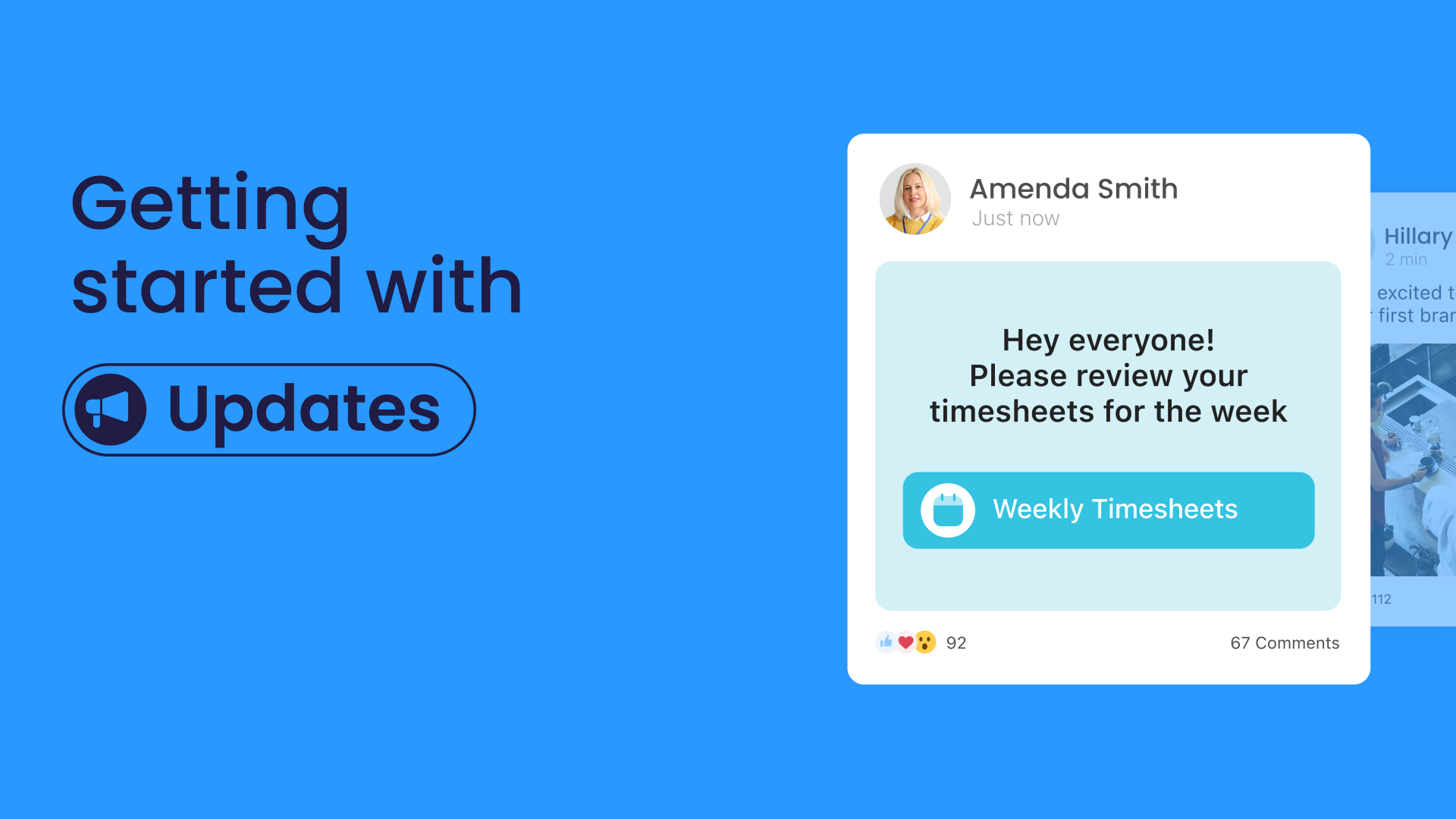 Reach every single employee at once and instantly share important company updates, announcements, and newsletters, in a social-media style updates feed